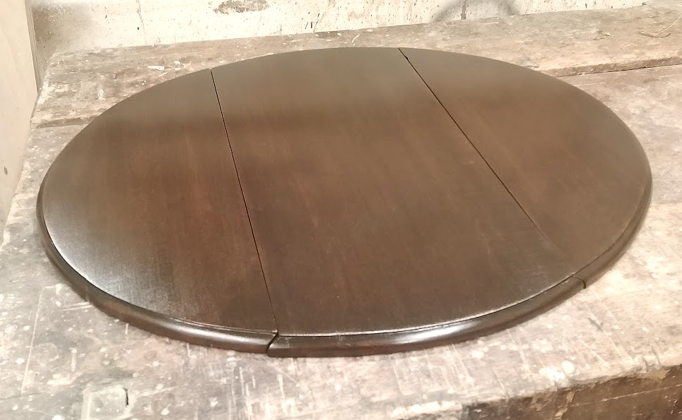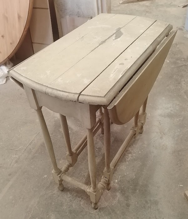 The table arrived with separated boards to the table top and leaves, the finish is dry and heavily stained. The framework is loose and damaged in places.