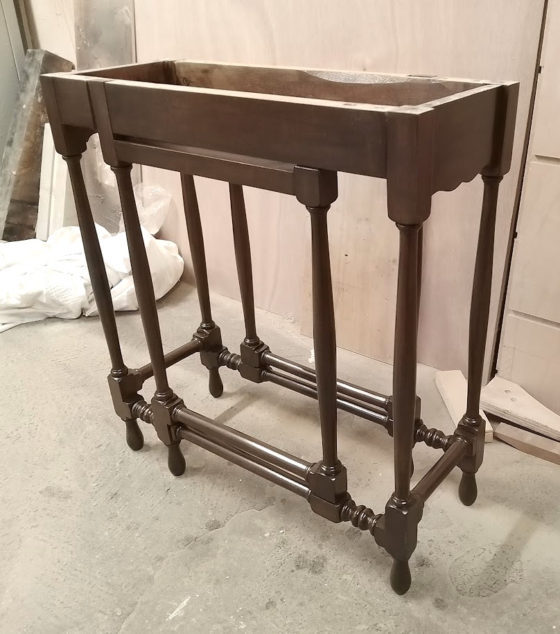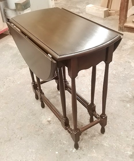 Finely turned details and elegant proportions. A beautiful little table repaired, refinished and returned to use.