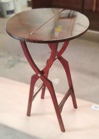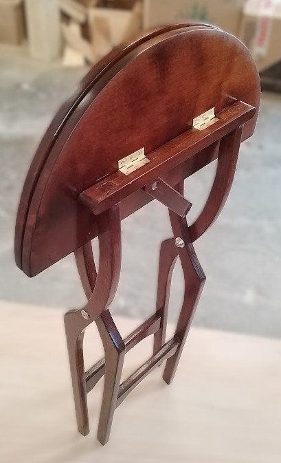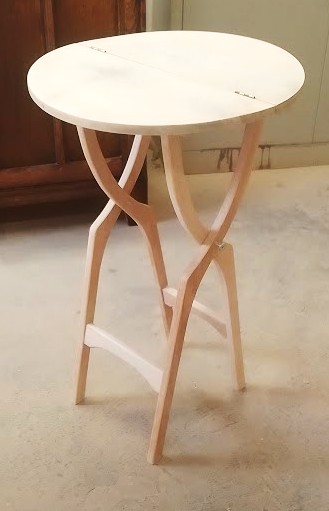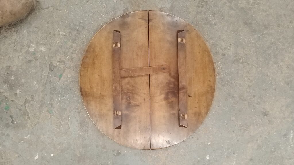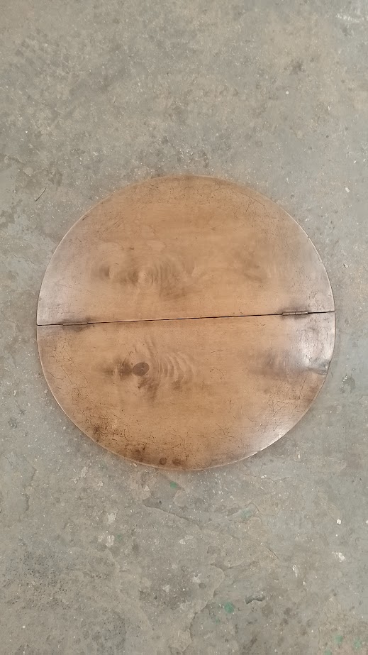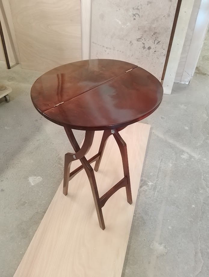 A sad little birch top separated from its legs and lost in a loft for decades. Stained, faded and abandoned, the brief was to make a new folding frame as close stylistically to contemporary historical examples. These were occasional, folding tables that could be moved and stored easily as and when required. The name derives falsely from the belief that they were carried on horse drawn coaches to be used as a table during resting times on journeys.