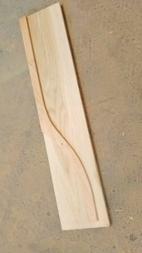 With only the top and faint traces of old fixings left, the challenge began with research and imagination. After studying period examples and experimenting with plywood models, we worked out the perfect pivot point for the legs. This step was crucial to ensure both stability and authentic movement. Once satisfied with the design, the templates were carefully transferred to European oak, chosen for its strength and fine grain.