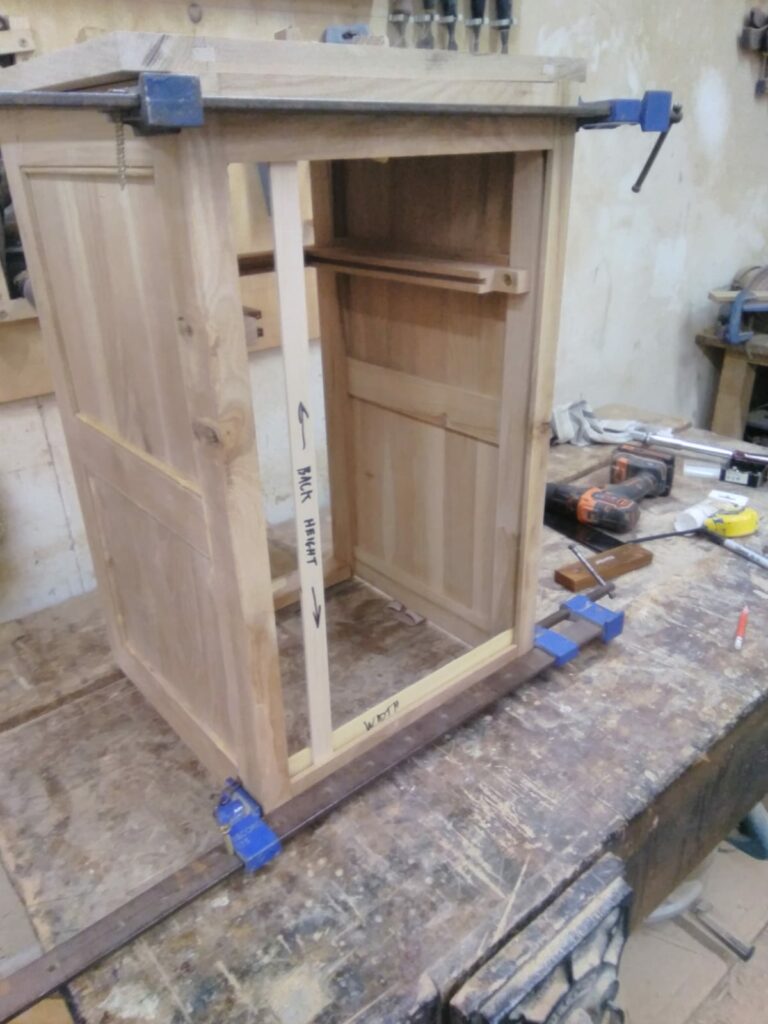 The transformation began by setting out the dimensions and proportions for a traditional frame-and-panel construction. Mortice and tenon joints were hand-cut to form the sturdy side panels and rails, while grooves were made to receive floating panels that can naturally expand and contract with the seasons. The drawer runners and front rails were fitted with precision, ensuring smooth movement and lasting strength.