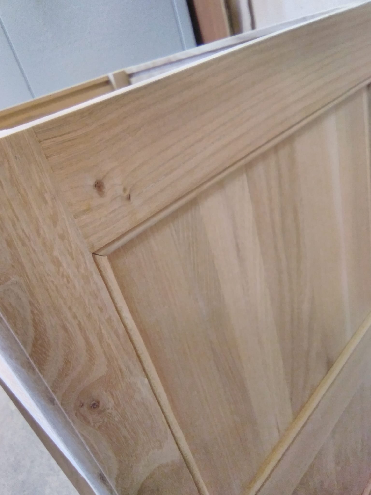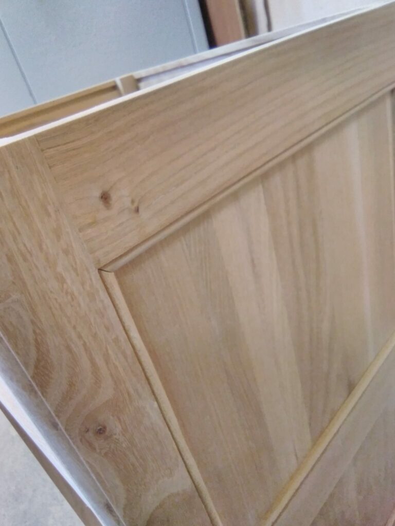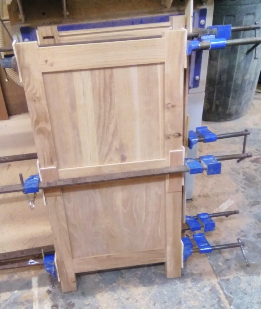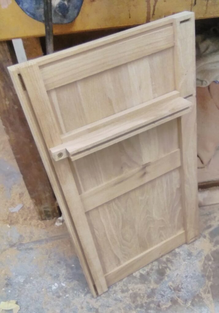A door is made and fitted using the same frame and panel construction as the sides