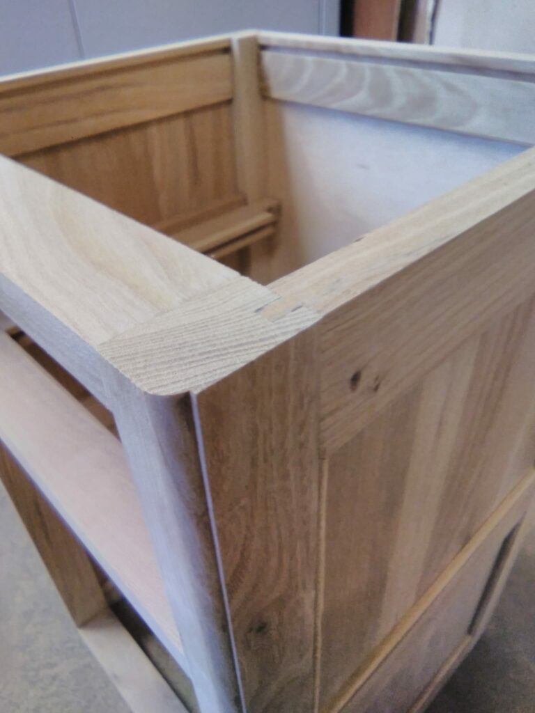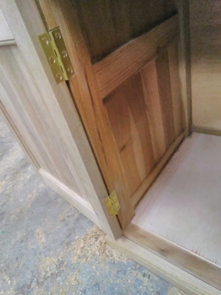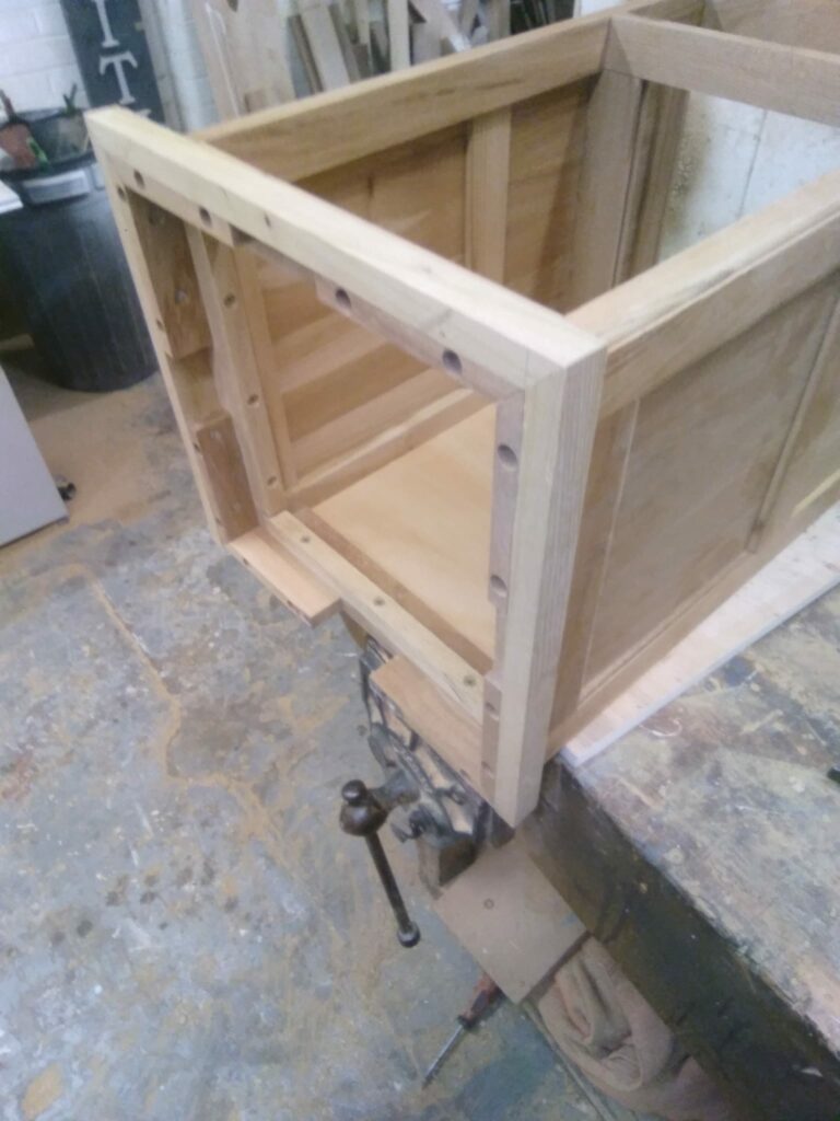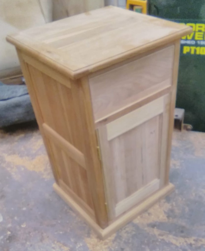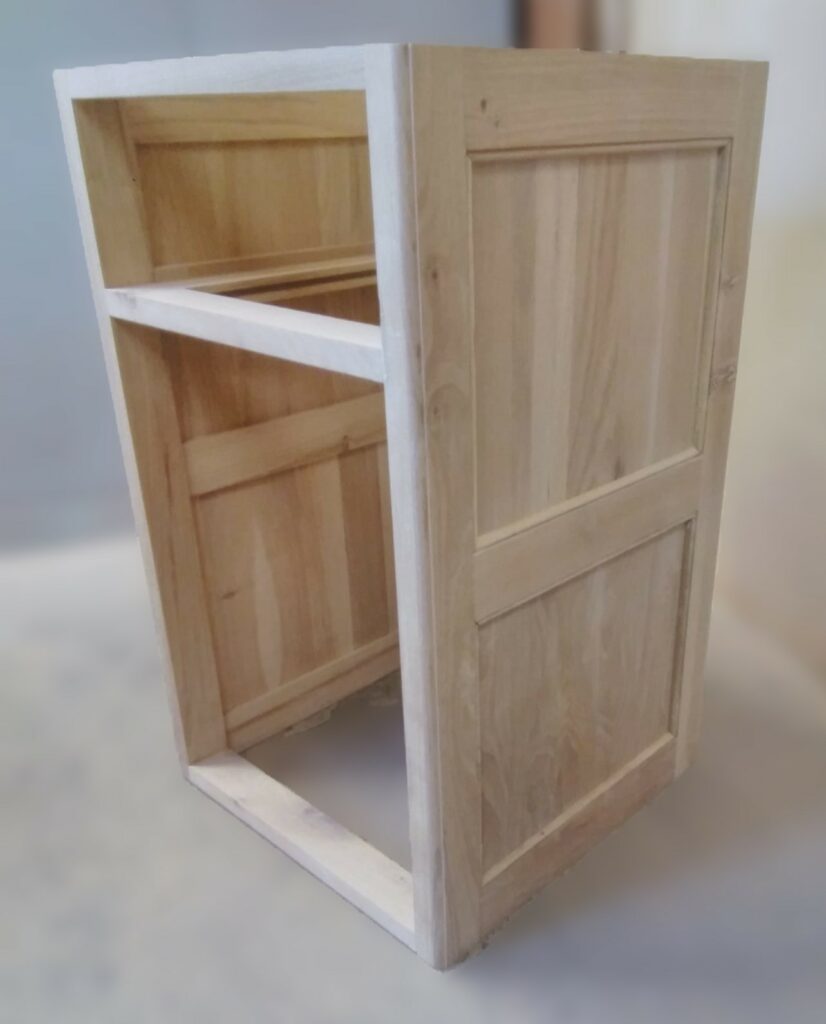 The completed cabinet carcass with the door fitted and a blank for the draw front fitted