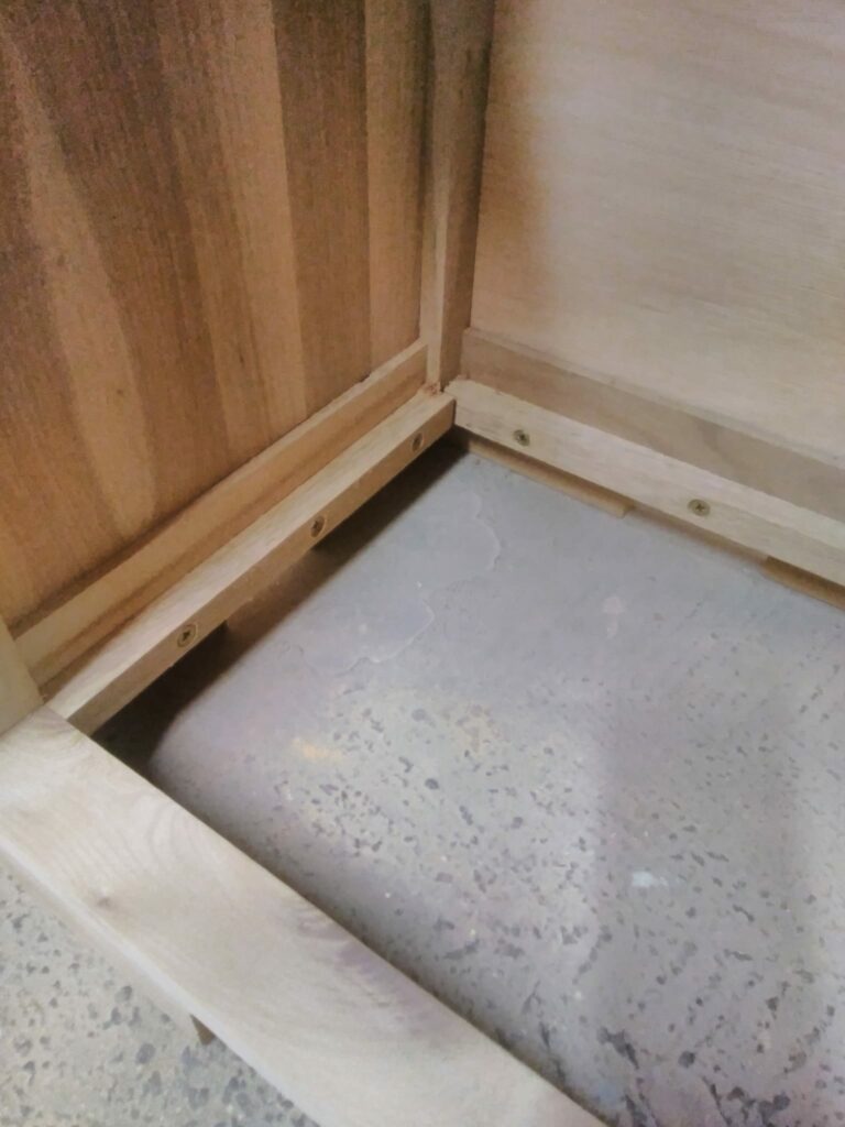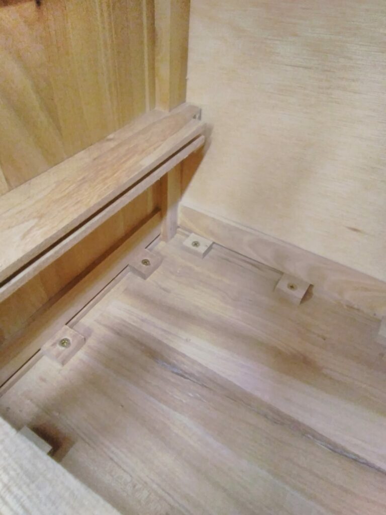 The draw runners and front rails are fitted to allow support for the draw while allowing the side panels to shrink and stretch without cracking