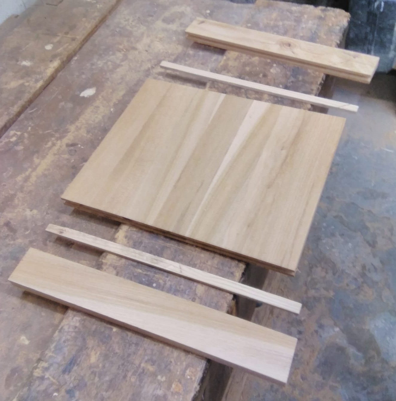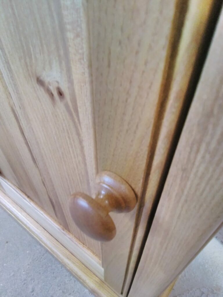 A cabinet made from a recycled table. The original piece was unwanted and destined for the tip but after dismantling, cutting and milling enough useful material was prepared for a new build. The thick table top was discovered to be veneered particle board and so pretty useless unfortunately.