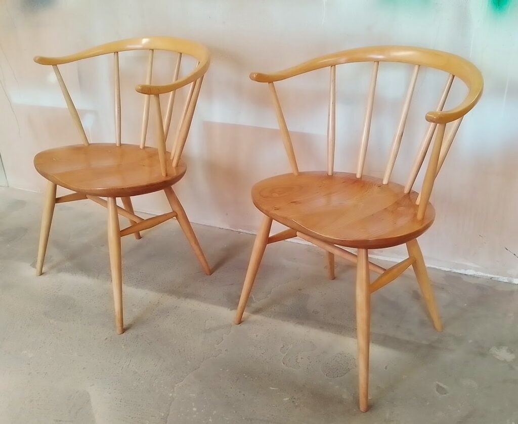 Rare pair of Ercol 333a ‘Cowhorn’ armchairs
