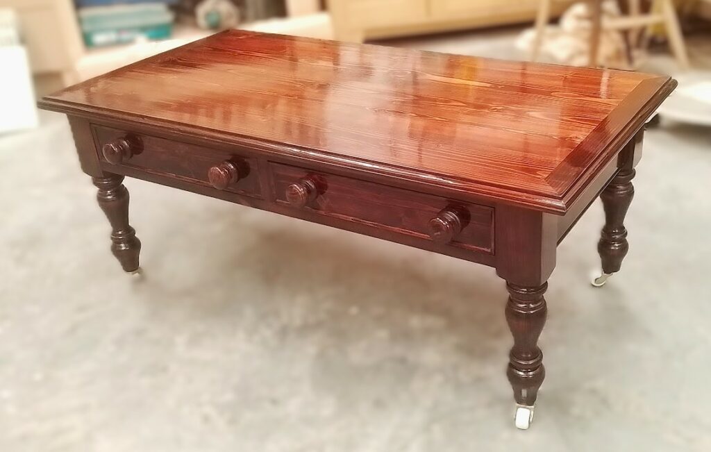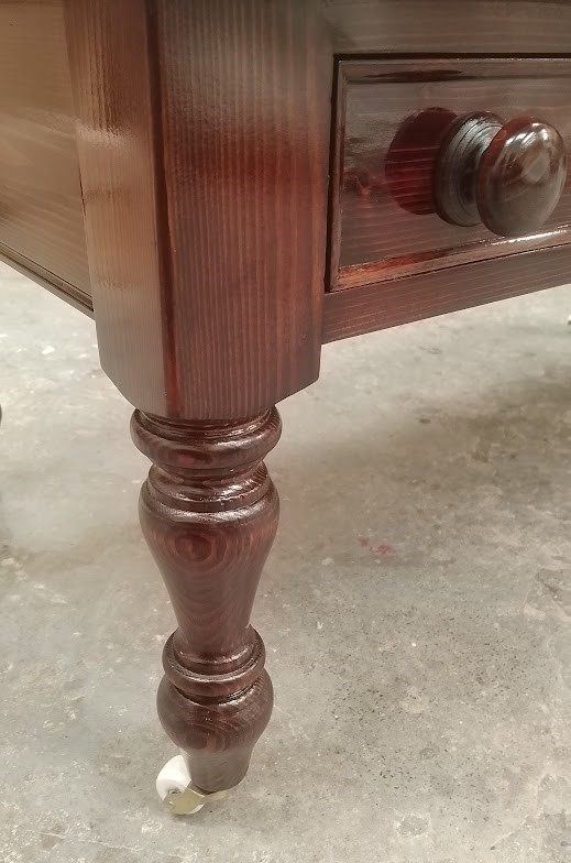 Once the table was fully prepared, we applied a protective finish. We meticulously checked each surface for consistency. Every corner, edge, and drawer pull meets our high standards for craftsmanship. As a result, the table is not only visually appealing but also ready for practical use in a modern home.