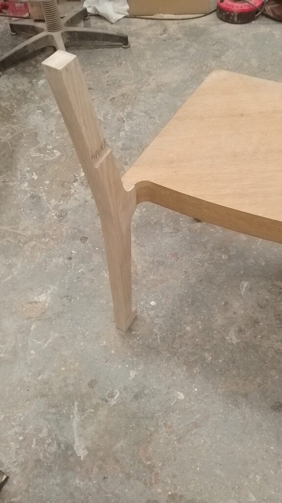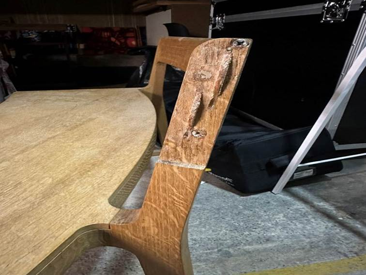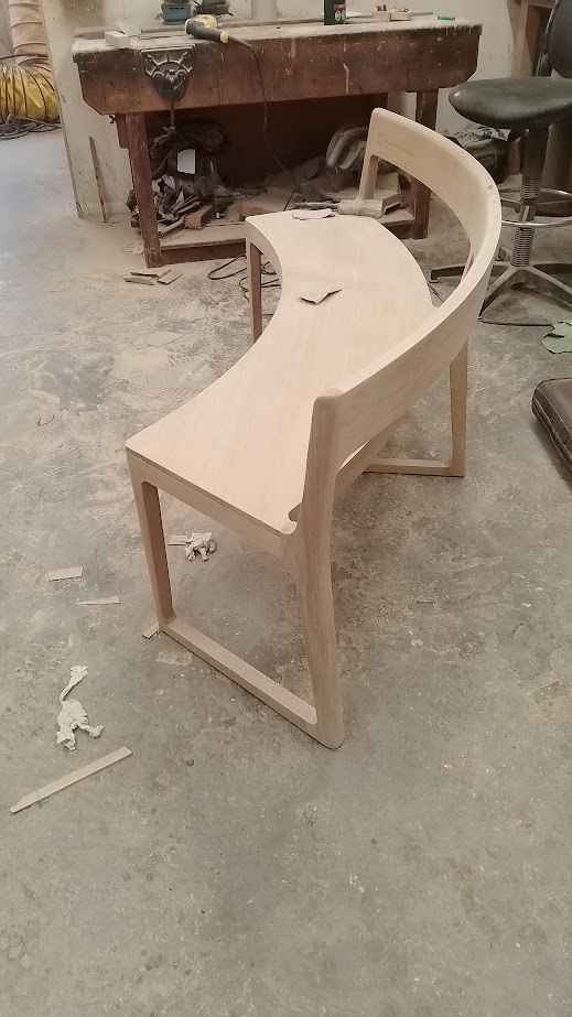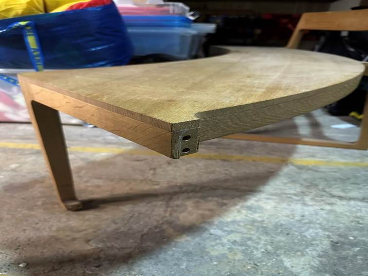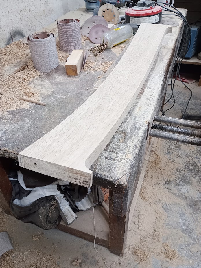 Once the laminated oak was dry, we moved on to the final shaping. Every angle against the uprights had to be perfectly aligned, and the original design used counterbored, concealed screws, which we faithfully reproduced.