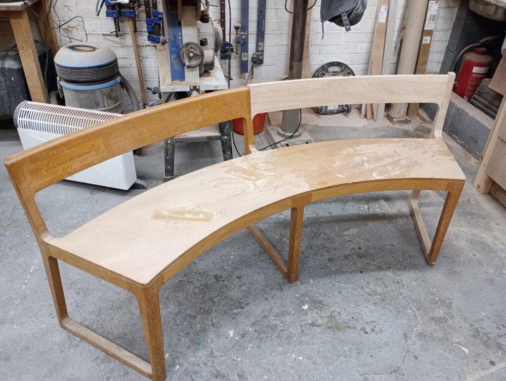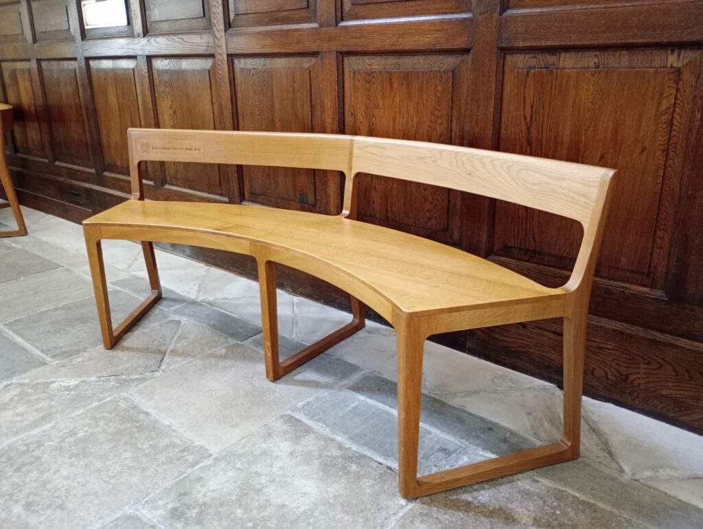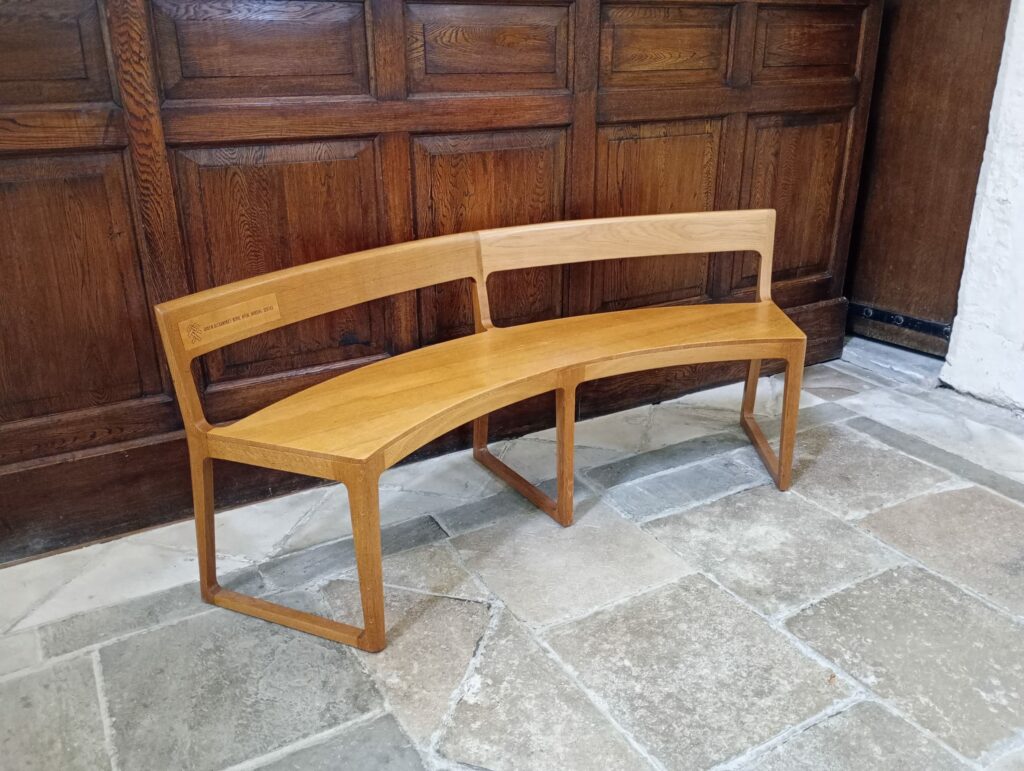 This elegant curved oak bench from Portsmouth Cathedral arrived in our workshop missing half of its back and one end frame. The Cathedral team entrusted us with the task of recreating the missing sections and restoring the bench to its full beauty. With its graceful lines and solid oak construction, it was a pleasure to bring new life to a piece that holds both craftsmanship and history within its design.
